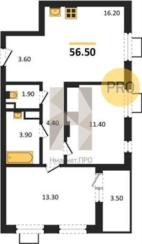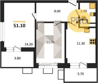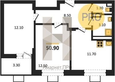 Площадь от 50.9 м2