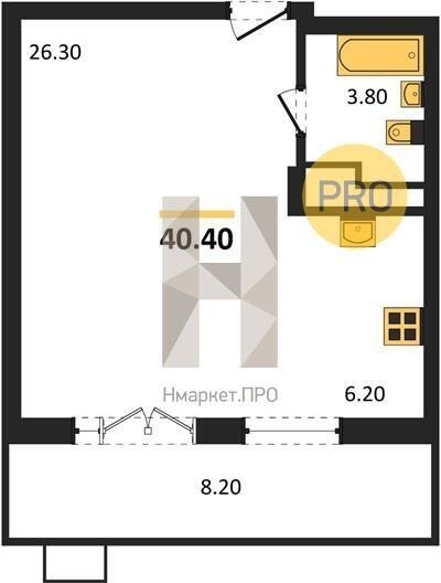 Площадь от 26.4 м2