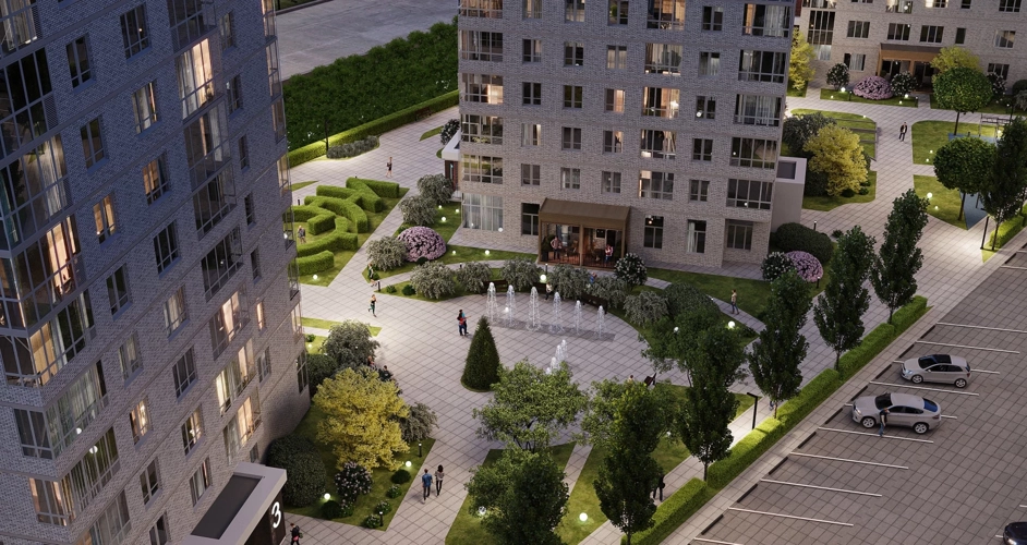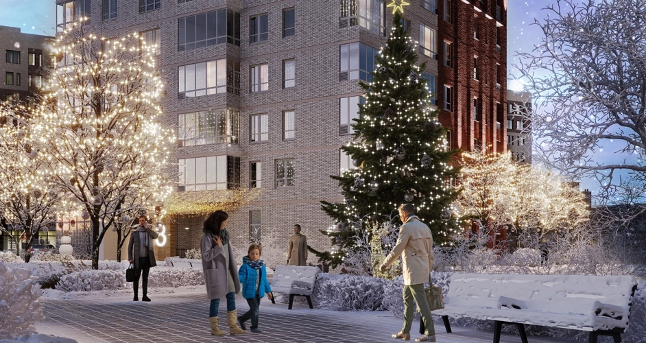 В самом центре ЖК есть «главная площадь» с сухим фонтаном, прогулками у которого смогут насладиться взрослые и дети. Летом фонтан подарит жителям прохладу и свежесть, а зимой на площади будет украшаться живая ель.