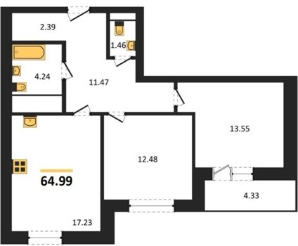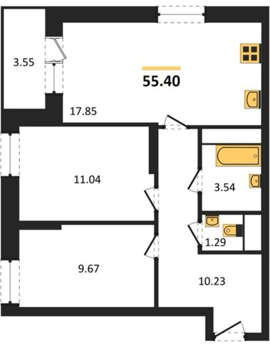 Площадь от 55.4 м2