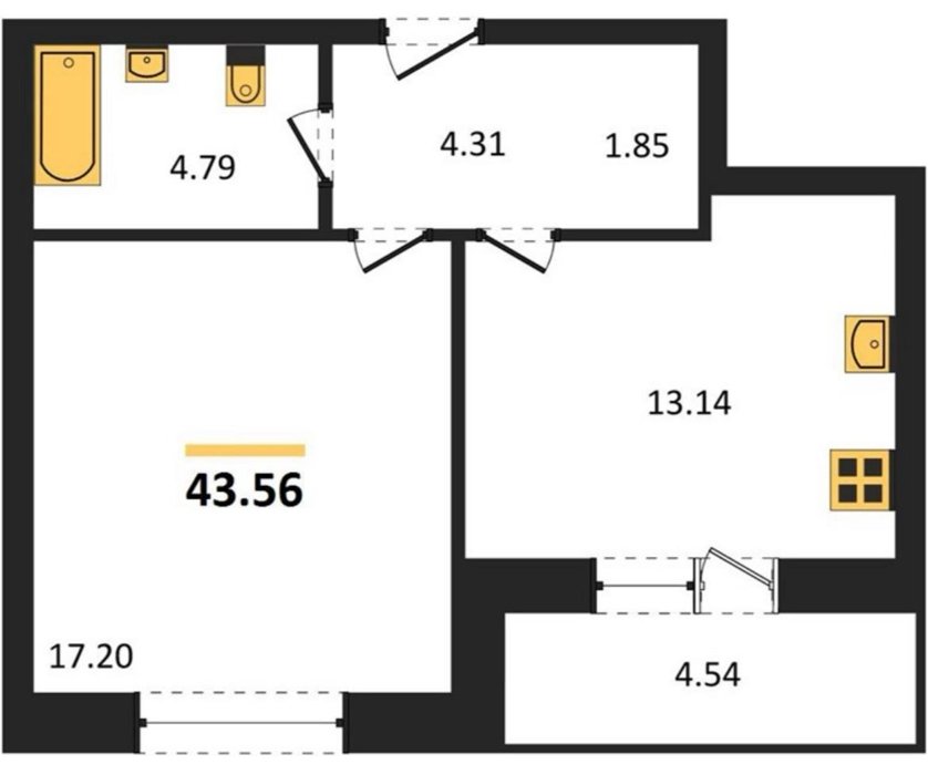 Площадь от 28.34 м2